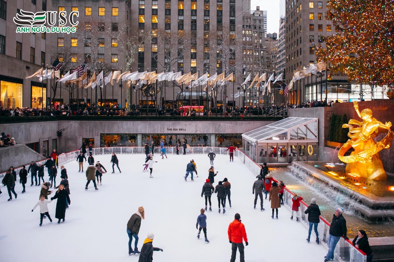 • Trung tâm Rockefeller (Rockefeller Center): Chiêm ngưỡng cây thông Noel khổng lồ được trang hoàng lộng lẫy và sân trượt băng nghệ thuật nổi tiếng thế giới.